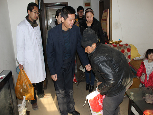 活動(dòng)在社區(qū)辦提供的四戶家庭情況較為困難的業(yè)主家中進(jìn)行。主要是對患病業(yè)主進(jìn)行義務(wù)就診,講解冬季預(yù)防疾病的常識,發(fā)放慰問物品。