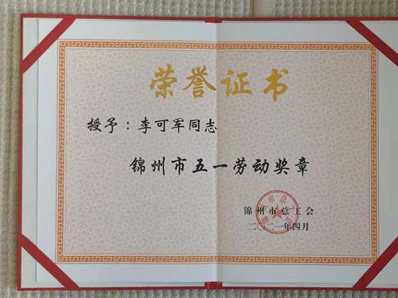 日,李可軍董事長榮獲“錦州市五一勞動(dòng)獎(jiǎng)?wù)隆睒s譽(yù)稱號(hào)。